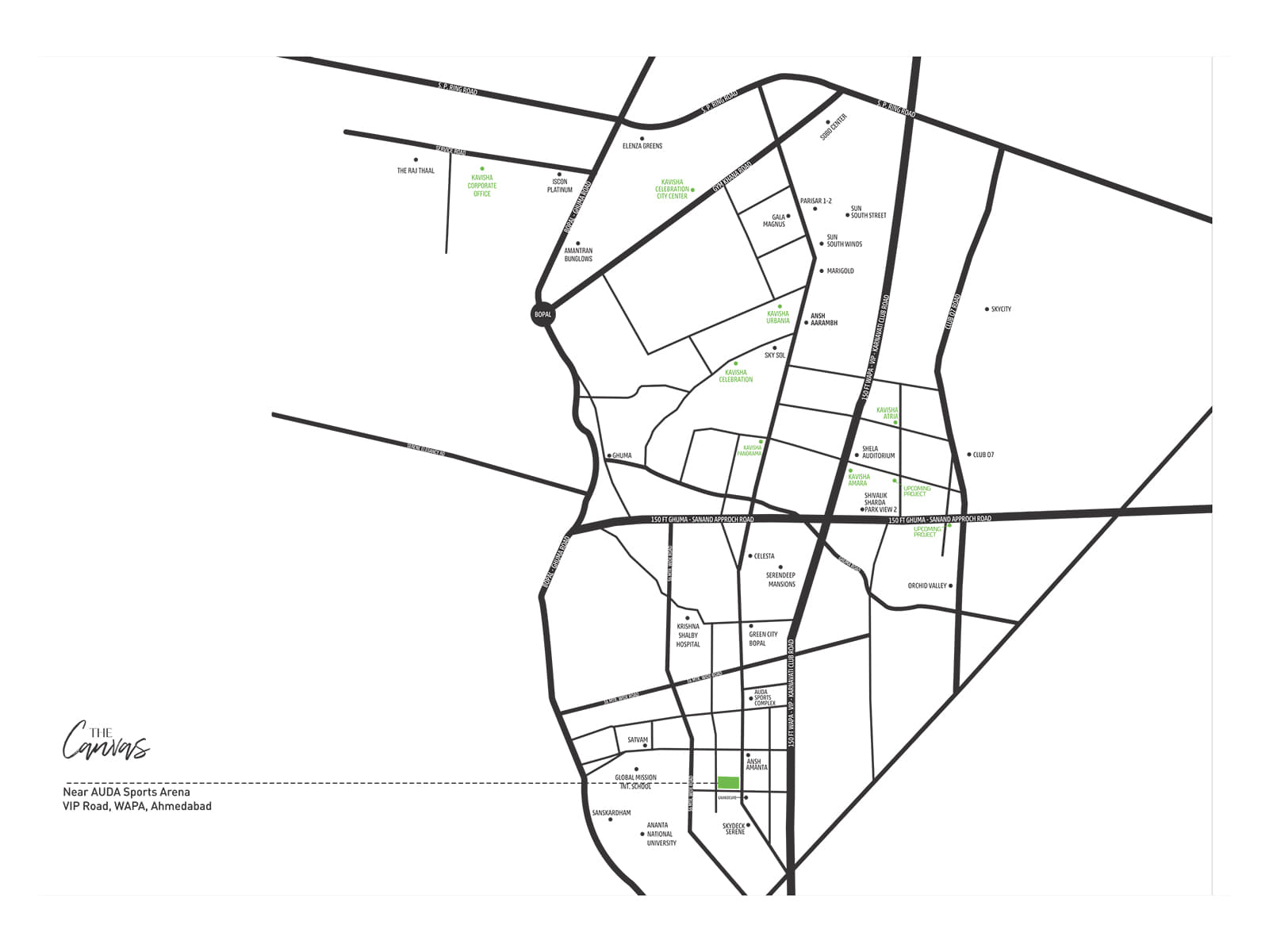 Positioned at well connected locality South Bopal, Bopal, The Canvas is an aesthetically built project of Ahmedabad. The units in The Canvas come at an affordable price that varies from Rs. 88. 0 Lac - 1. 32 Cr. Spread over a vast area of 18000 Sq-yrd, the project is a well-established one. There are in total 402 units in this project. It's a brilliantly made Residential property that's sure to wow you. The exquisite property offering spacious units is Under Construction. The project boasts of a range of configurations viz Flat which are charming, yet durable. This mesmerizing property is available in sizes from 3 BHK Flat (2200. 0 Sq. Ft. - 2200. 0 Sq. Ft. ), 4 BHK Flat (3300. 0 Sq. Ft. - 3300. 0 Sq. Ft. ) to provide a spacious and comfortable living. The project comprises of 8 towers, each of which has been carefully constructed. The launch date of this much awaited project is 01 March 2021. 01 December 2025 is the date of possession. The Canvas has been developed by the well-known builder Kavisha Group. You can enjoy the best facilities and amenities at The Canvas, such as Park, Lift, Multipurpose Hall, Kids play area, Water Storage, Security, Reserved Parking, Power Back Up, Gymnasium, Swimming Pool. You can reach out to this project at Near Sanskardham, South Bopal Extension, Sanand, Ahmedabad, Gujrat. Its pincode is 380058. At The Canvas, you can enjoy a modern lifestyle as all conveniences are easily available.
